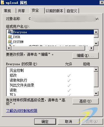 于是查看上傳目錄,目錄的權限已經包含"Everyone",目錄應該也沒有問題(之前上傳的圖片都可以訪問)