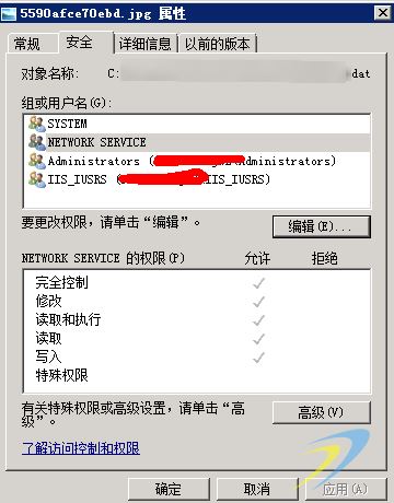 ?更改后的權限配置(必須包含IUSER和IIS_IUSERS權限或Everyone)