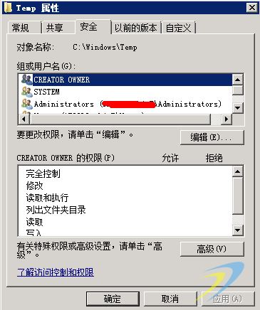 - 將"C:\Windows\Temp"目錄添加相應的權限