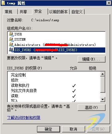 這樣就存在一個問題,即Temp目錄下默認的權限是沒有相應的IIS訪問權限的(windows默認配置),當文件上傳到該目錄時那么上傳的文件默認是繼承了Temp目錄的權限